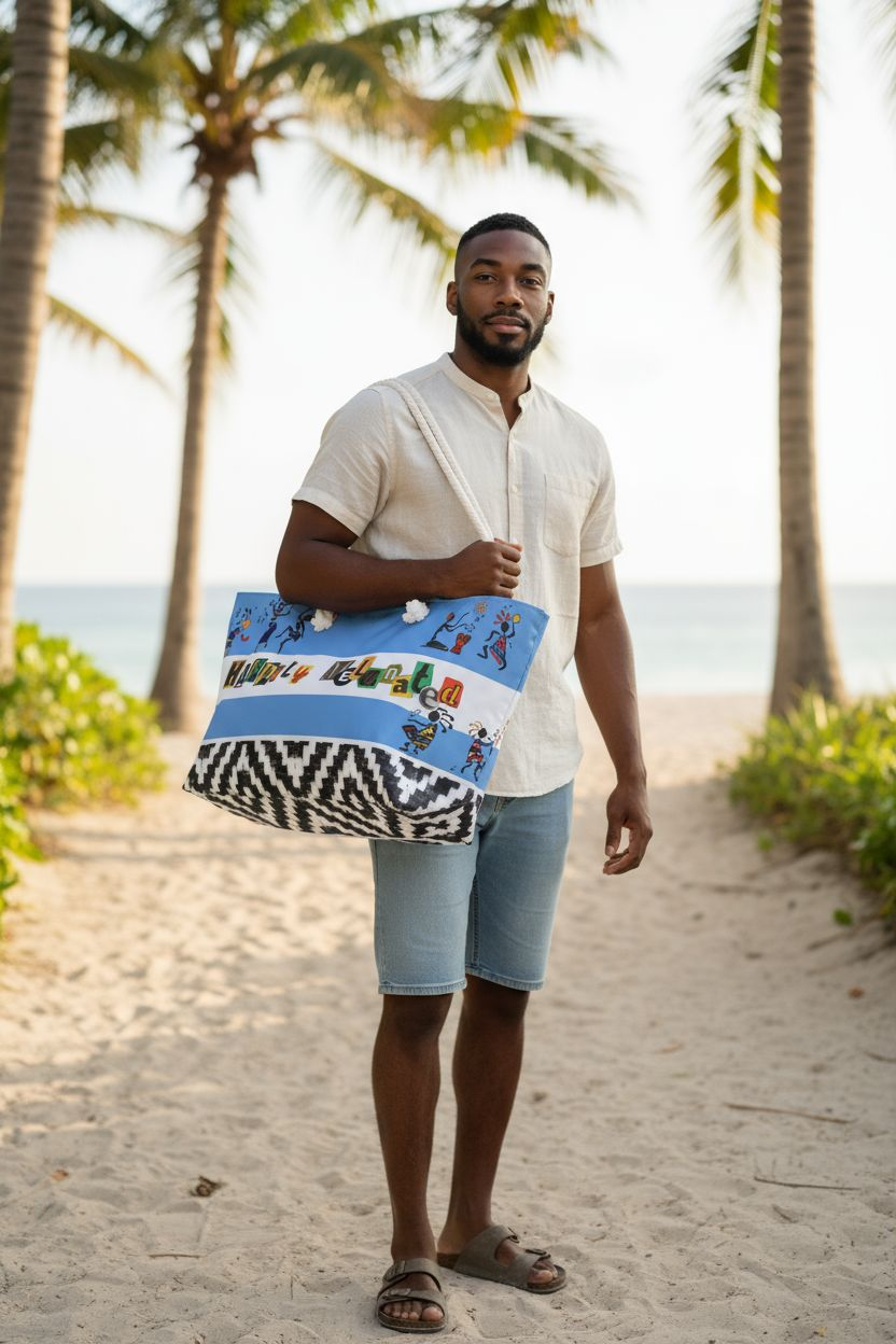 Handcrafted Ethnic Music Art Weekender Bag - Oversized, Durable Tote with Rope Handles