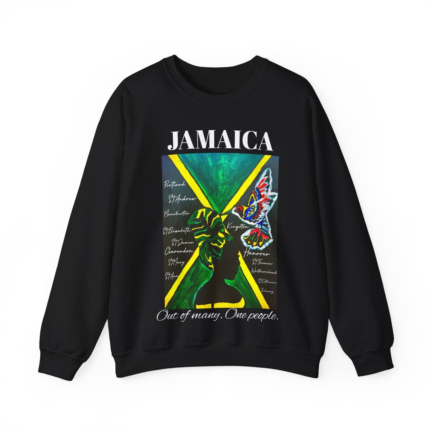 Handcrafted Graphic Sweatshirt featuring Jamaican Flag Art, Cozy Crewneck