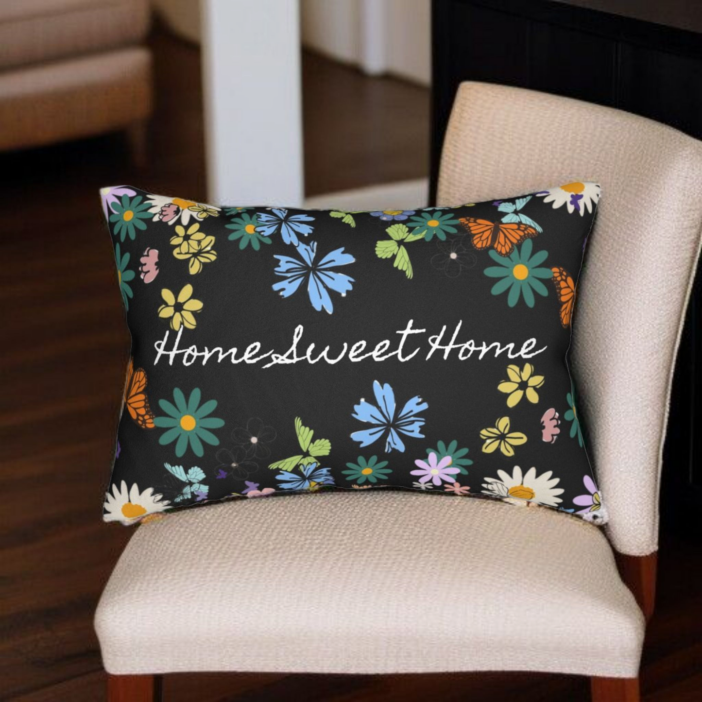 Home Sweet Home Floral Lumbar Pillow - Cozy Accent for Living Room
