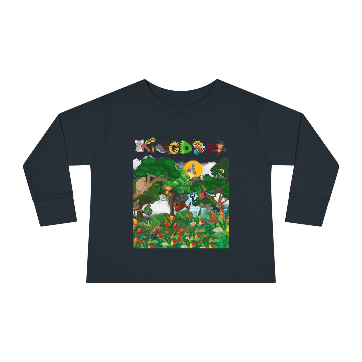 Adorable toddler long sleeve tee featuring a graphic animal in a jungle design. Perfect for playful and adventurous little ones, this tee is ideal for everyday wear and can also be a great gift for birthdays or holidays.