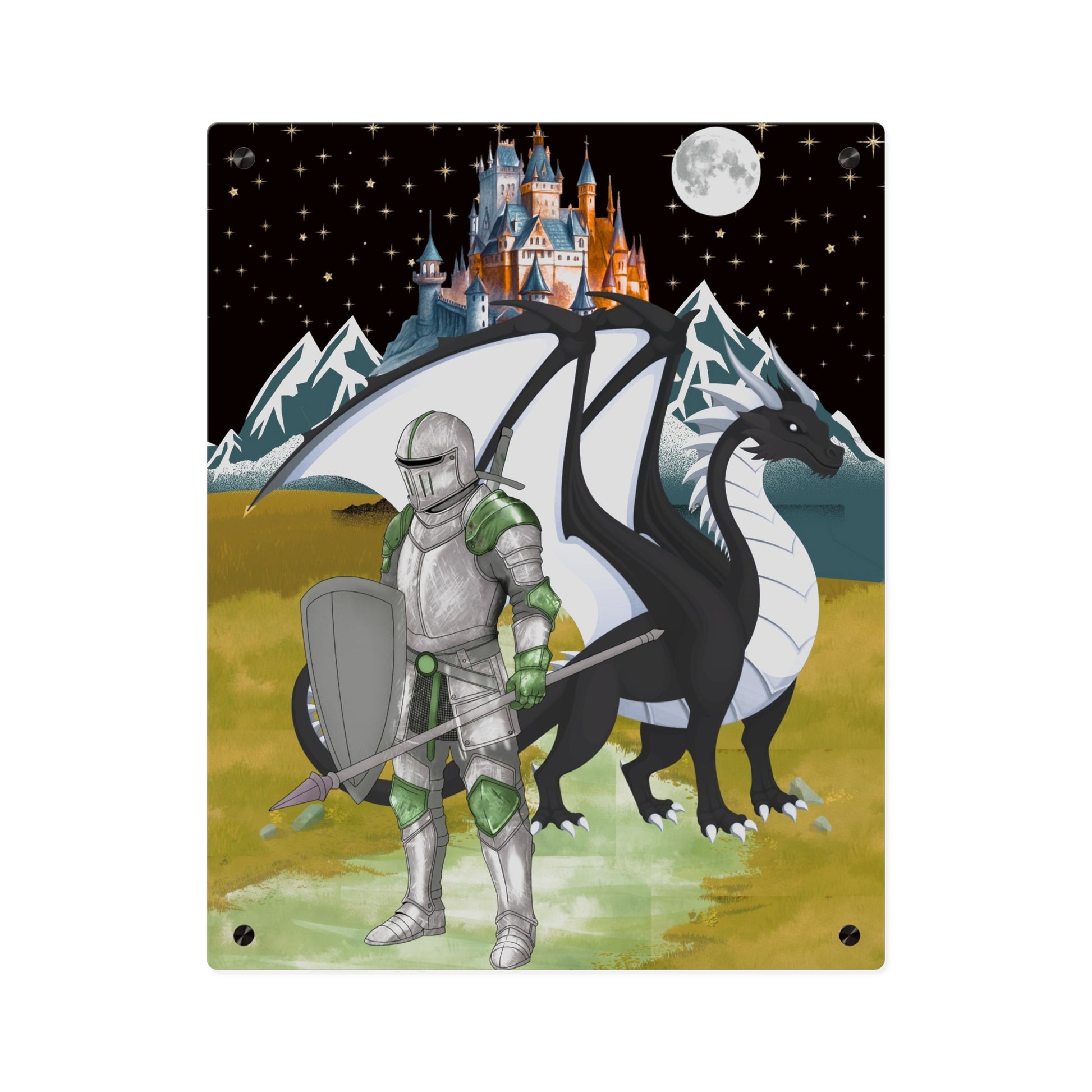 Knight and Dragon Acrylic Wall Art Panel — Fantasy Castle Nightscape Décor