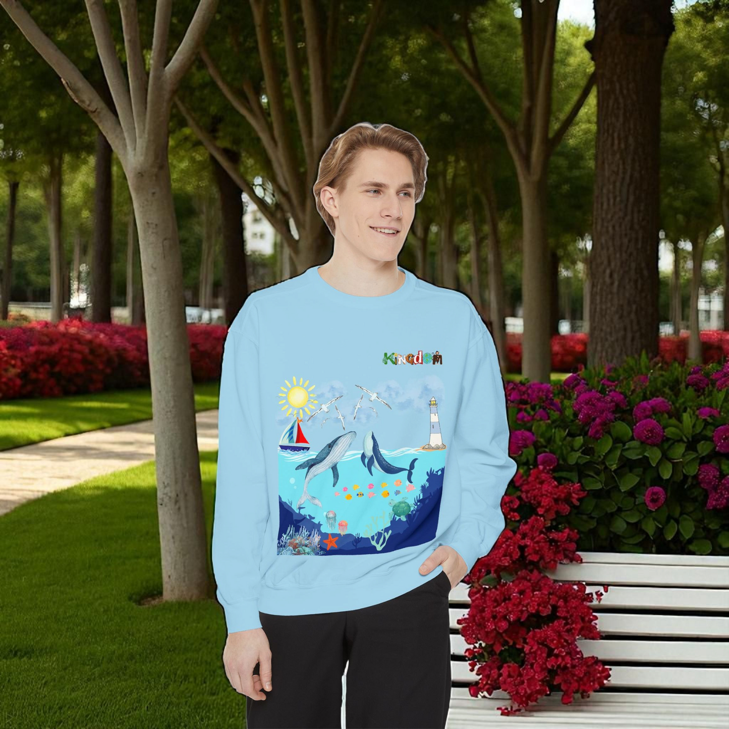 This nautical and sailor-themed Unisex Garment-Dyed Sweatshirt features underwater animals and sailor life designs. Perfect for those who love the sea and sailing adventures, this sweatshirt gives a relaxed and cozy vibe. Ideal for anyone who enjoys coastal living, beach vacations, or ocean-related holidays and celebrations.