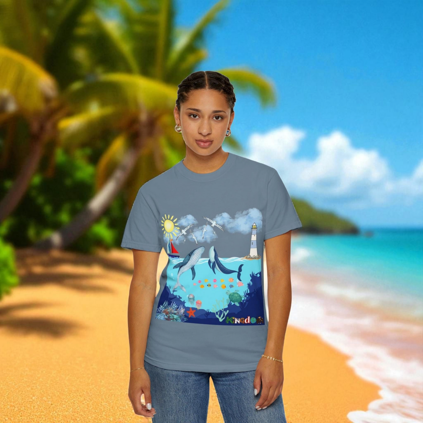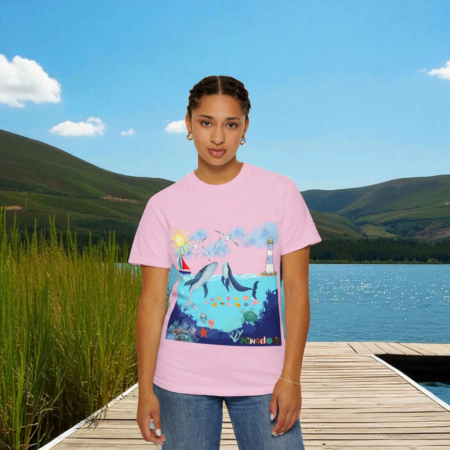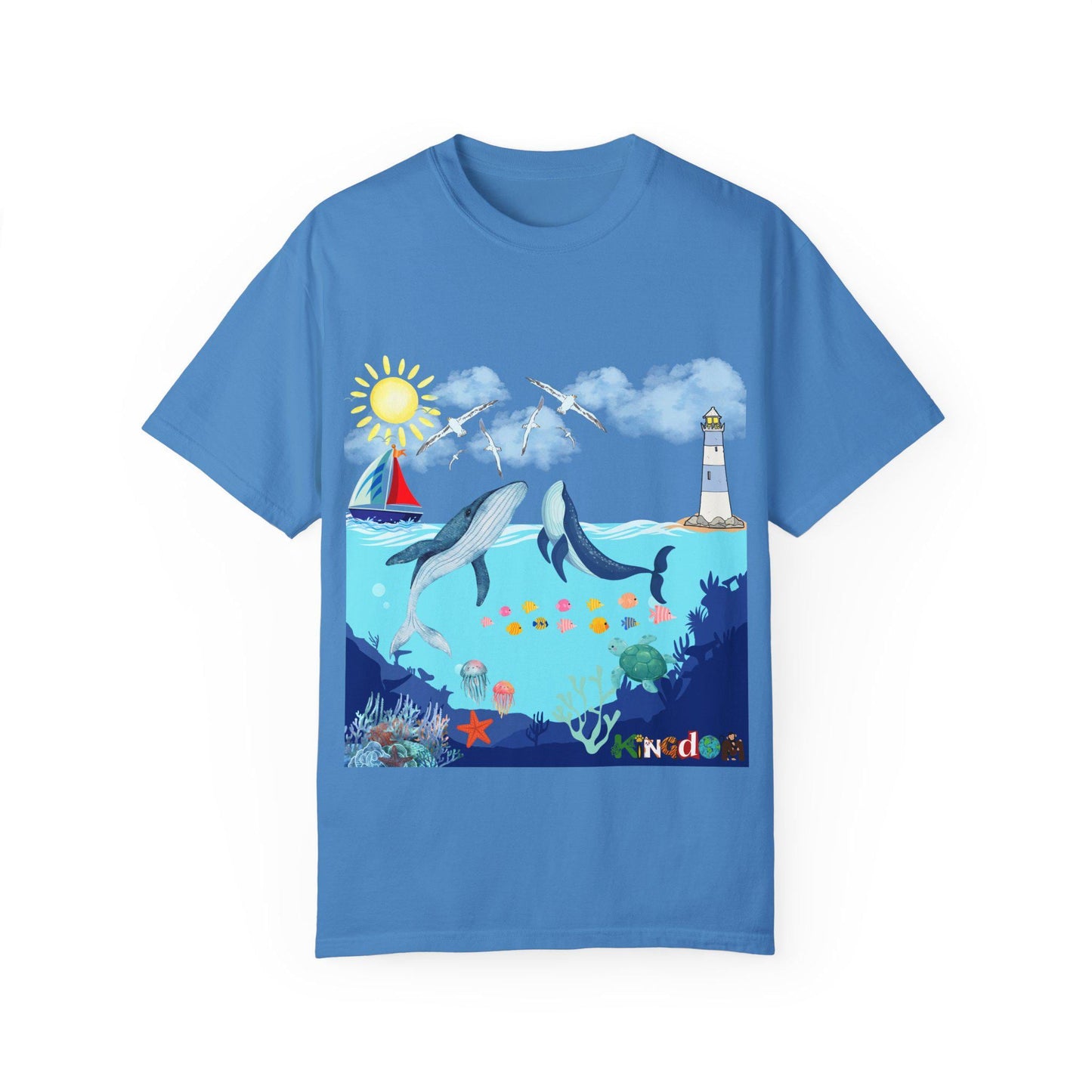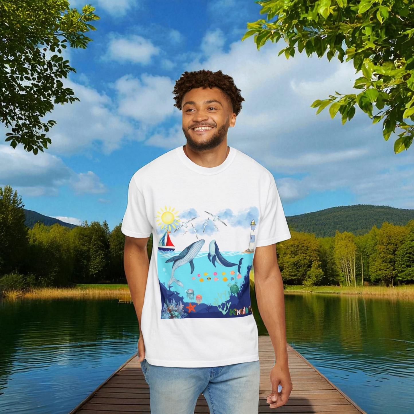 Nautical Ocean Life Whales Graphic Unisex T-Shirt, Nature Art Tee, Beachwear Shirt