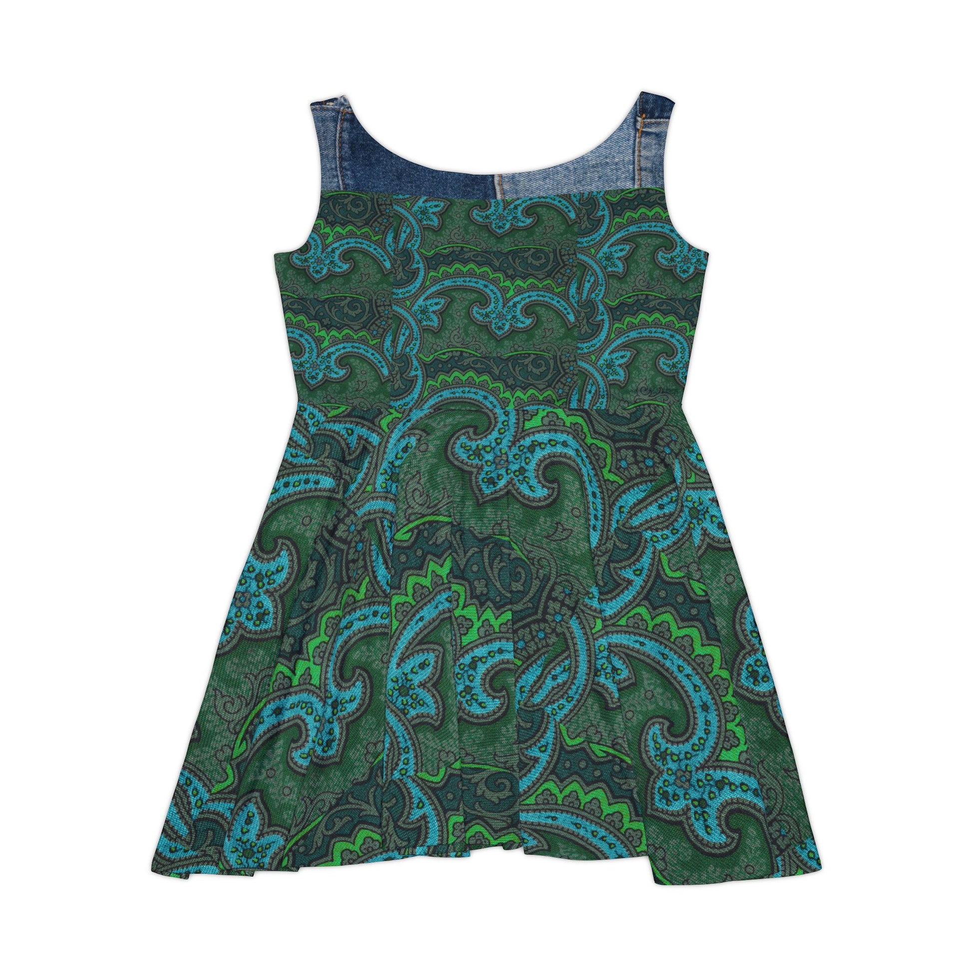 Skater Dress — Green Paisley Denim Panel All-Over Print