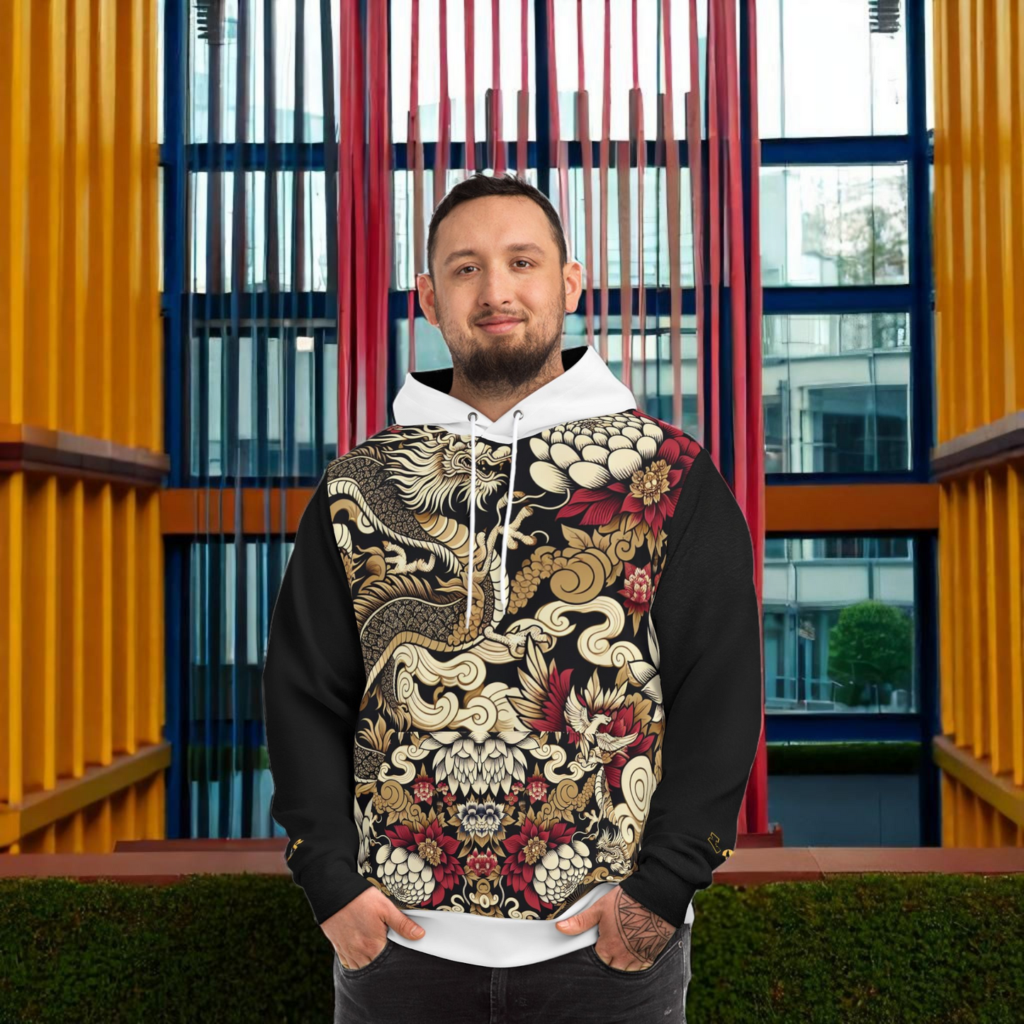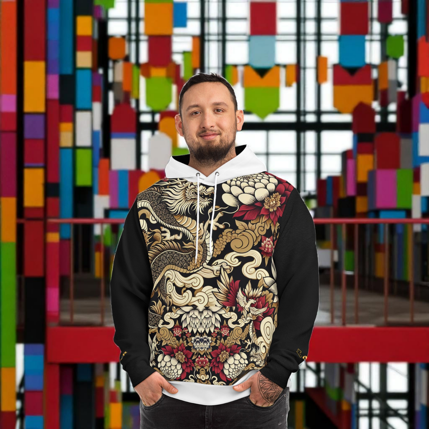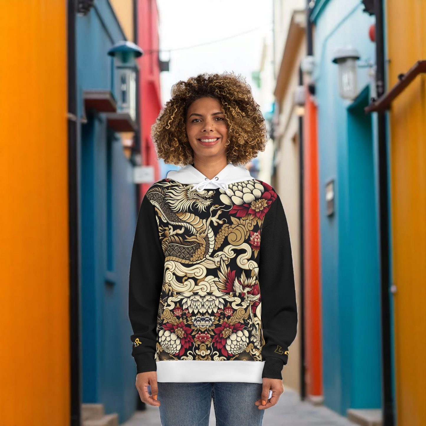 Stylish Dragon Hoodie, Unique Fashion Sweatshirt, AOP Design, Trendy Streetwear