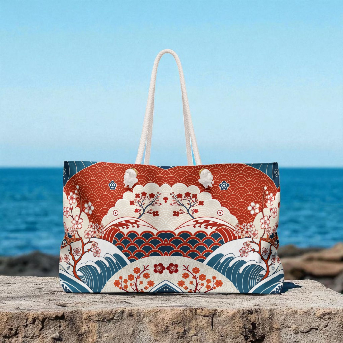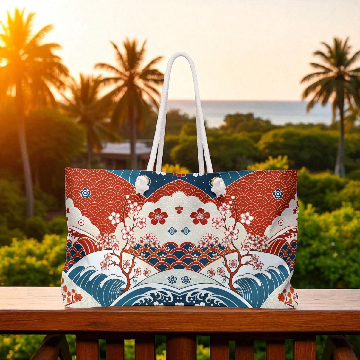 Stylish Weekender Bag with Floral Wave Design | Perfect for Travel
