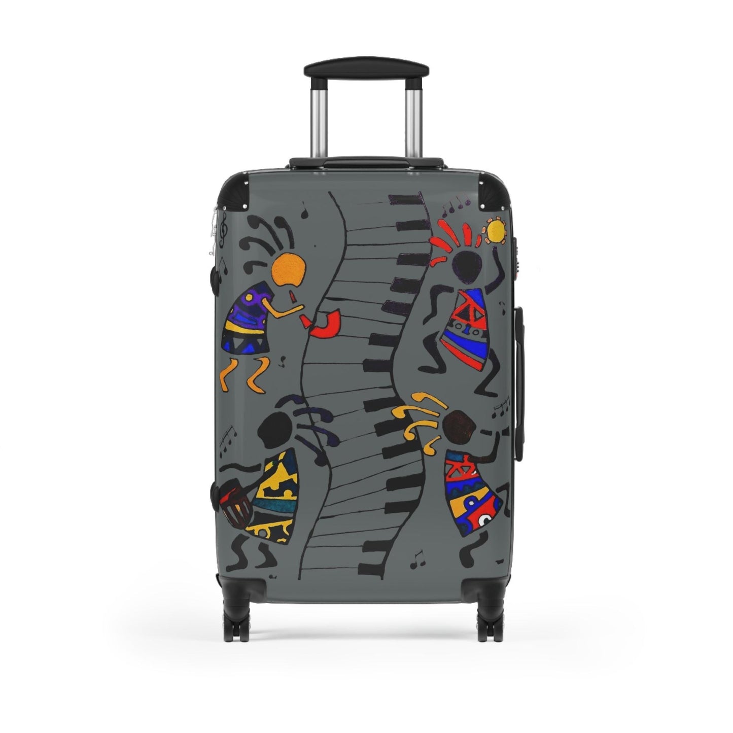 Suitcase, Afro Music Cartoon Suitcase, Handcrafted Luggage Bag, Traveler Gift