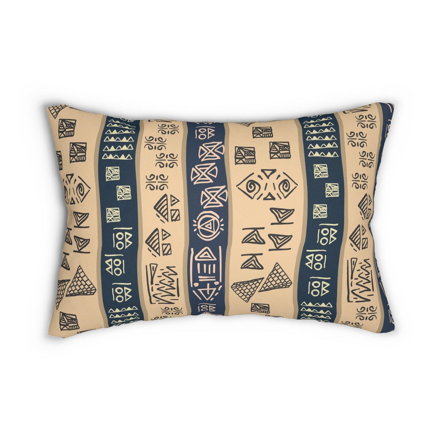 Tribal Spun Polyester Pillow, Decorative Cushion, Boho Throw Pillow, Ethnic Pattern Lumbar Pillow