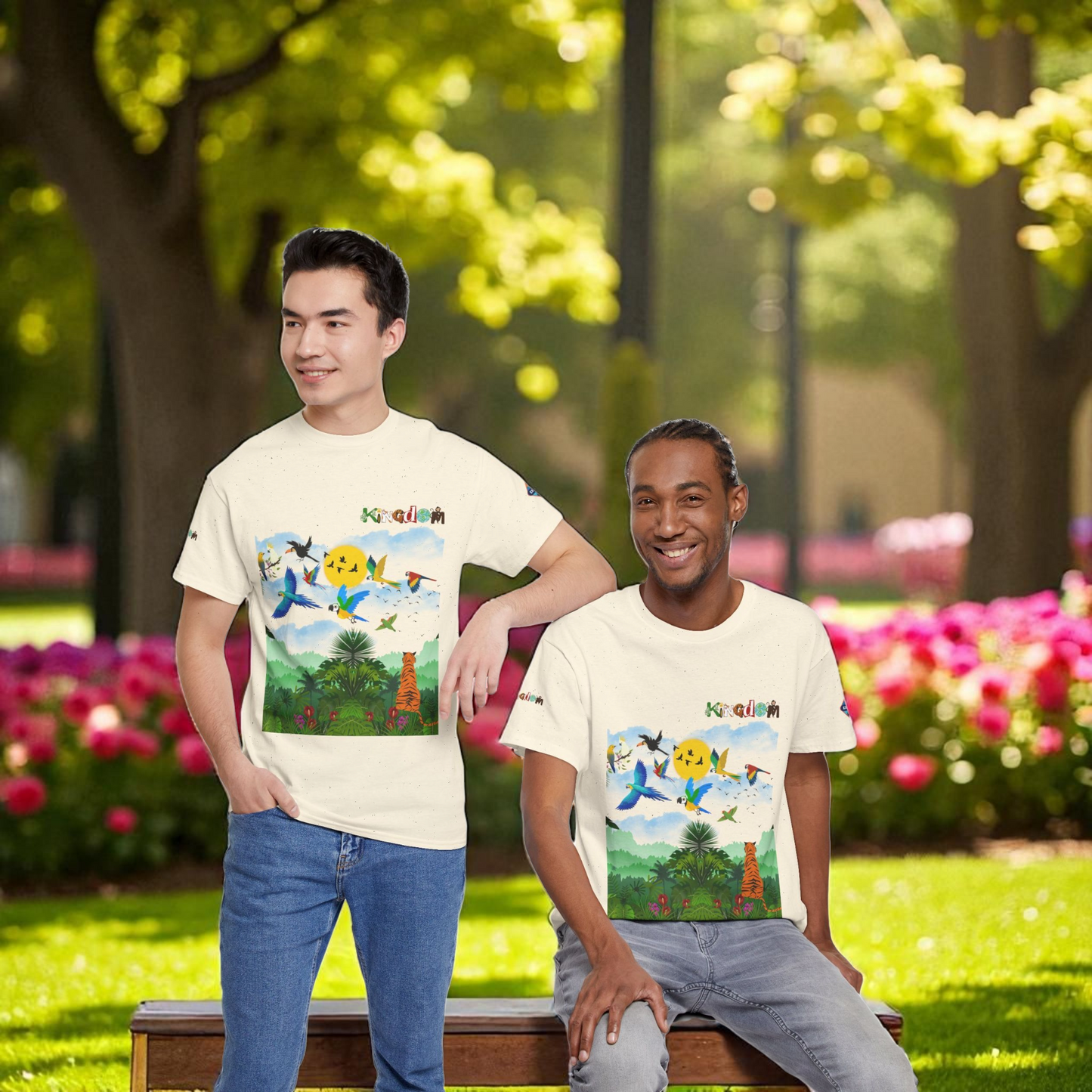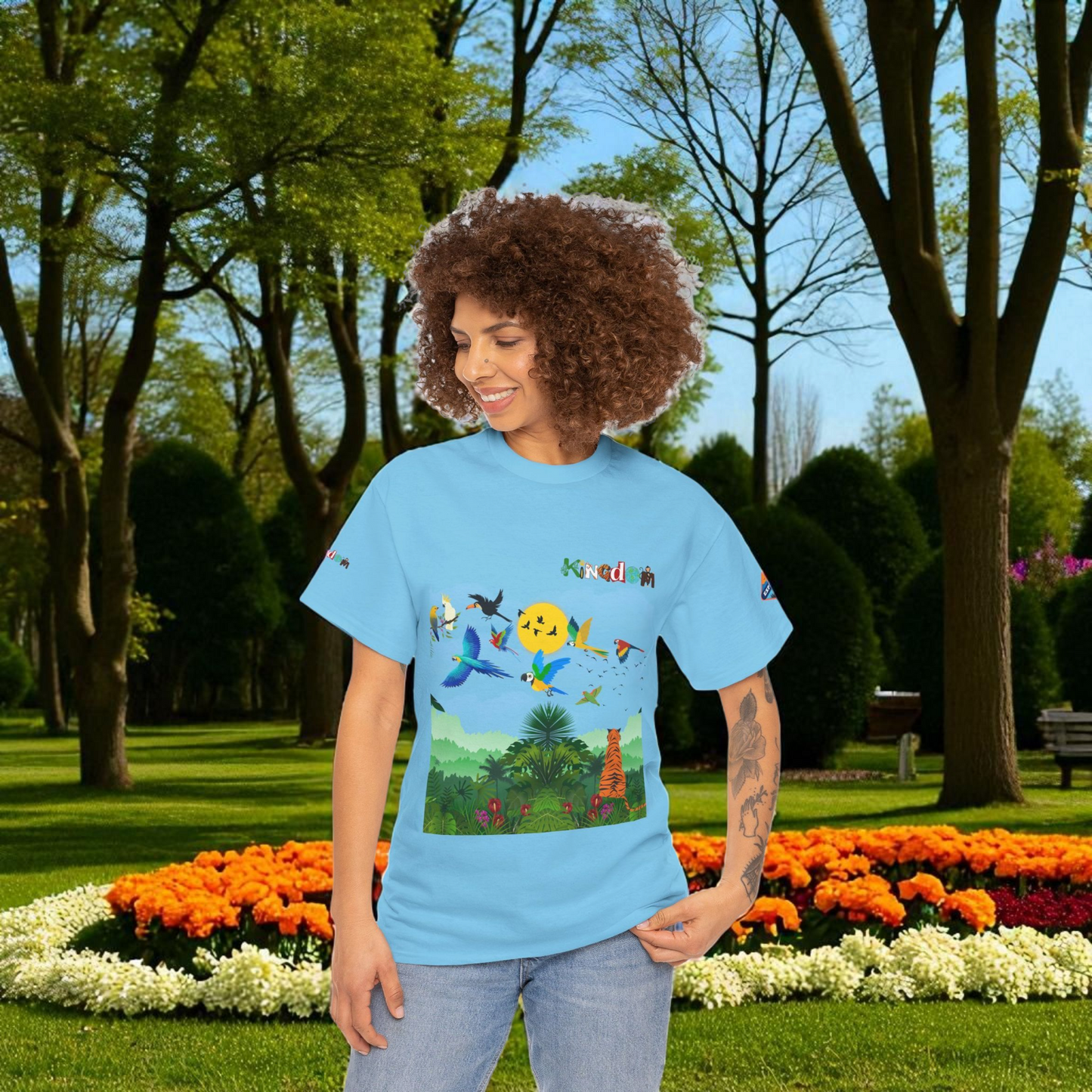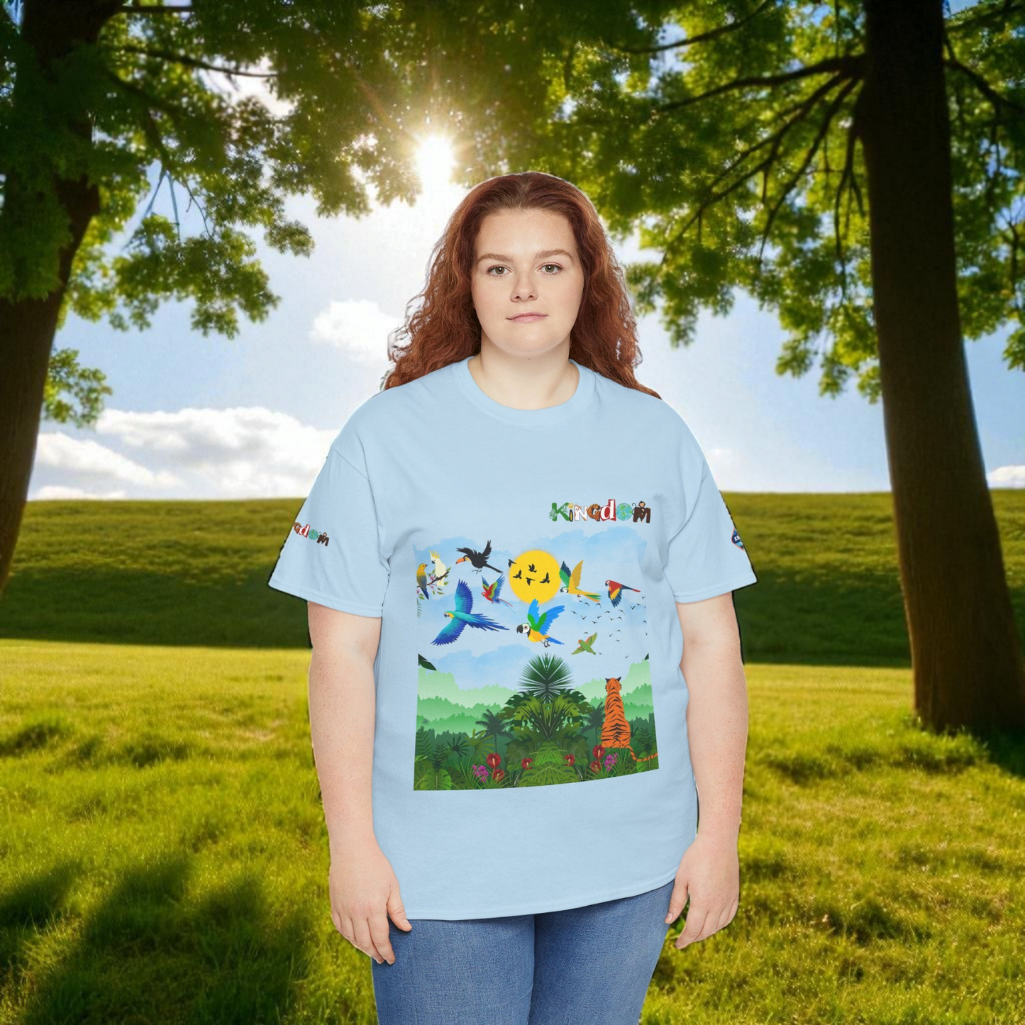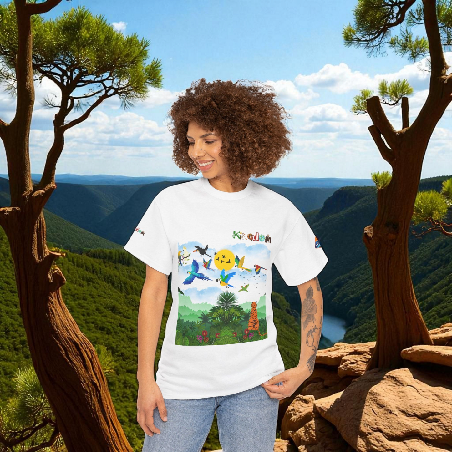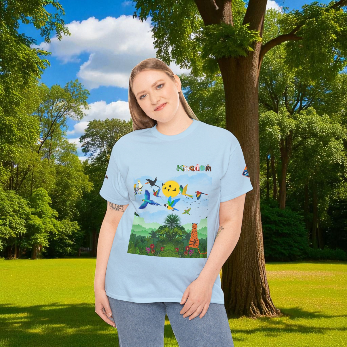 This unisex graphic heavy cotton tee features a vibrant design of jungle animals and tropical birds, giving off a fun and adventurous vibe. Perfect for nature lovers and those who enjoy a pop of color in their wardrobe. Ideal for casual outings, summer vacations, and tropical-themed parties. Product features - Shoulder tape for stabilization - Ribbed knit collar - Made from strong and smooth specially spun fibers - 100% cotton composition - Classic fit with tear-away label for comfort Care instructions - Machine wash: warm (max 40C or 105F) - Non-chlorine: bleach as needed - Tumble dry: medium - Do not iron - Do not dryclean