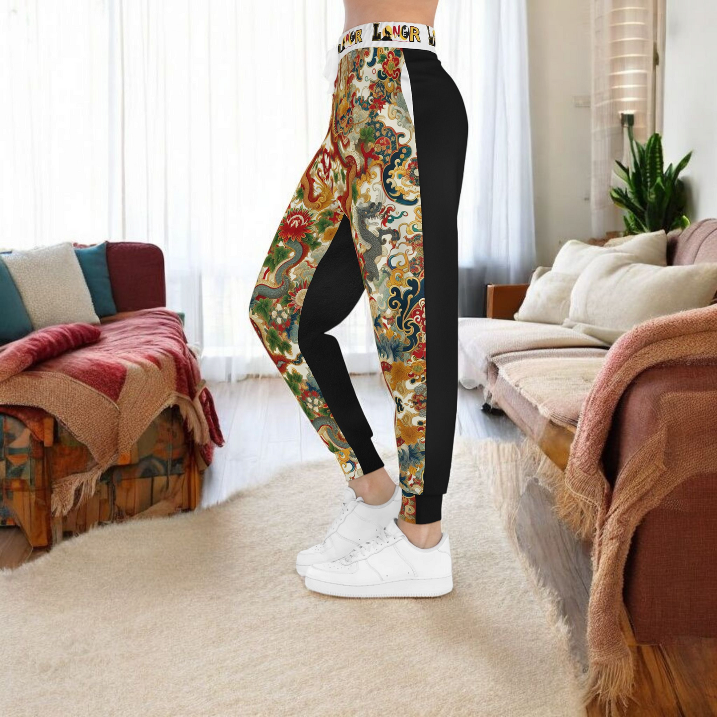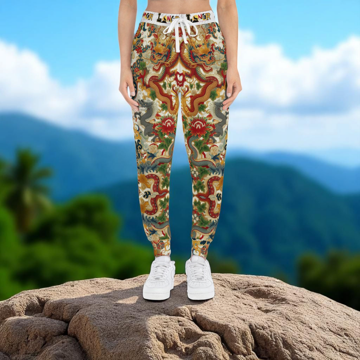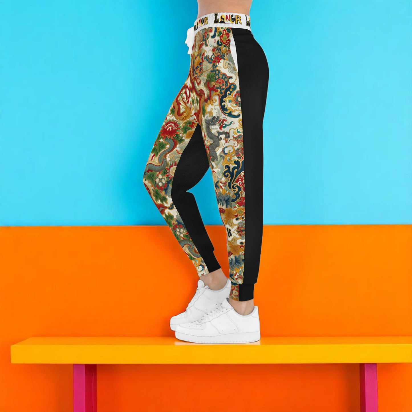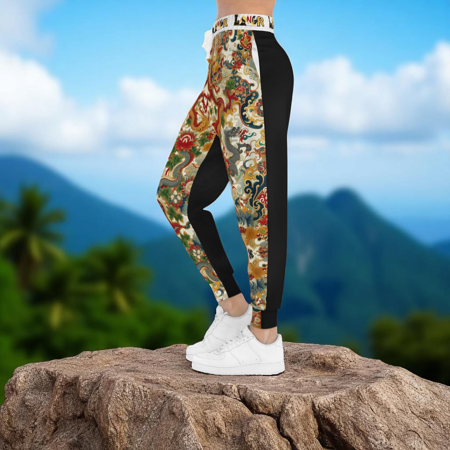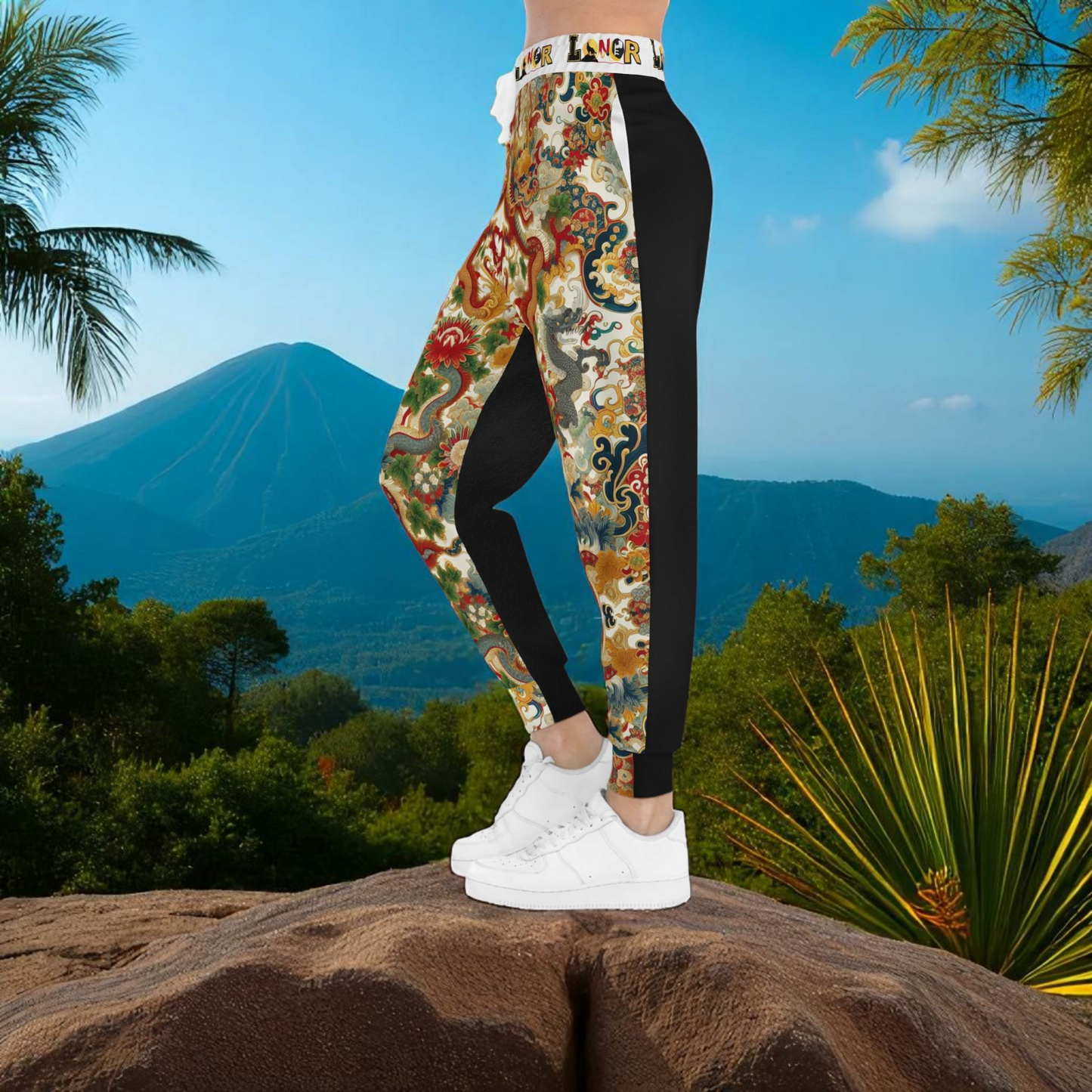 Vibrant Floral Dragon Print Athletic Joggers, Comfortable Unisex Sweatpants