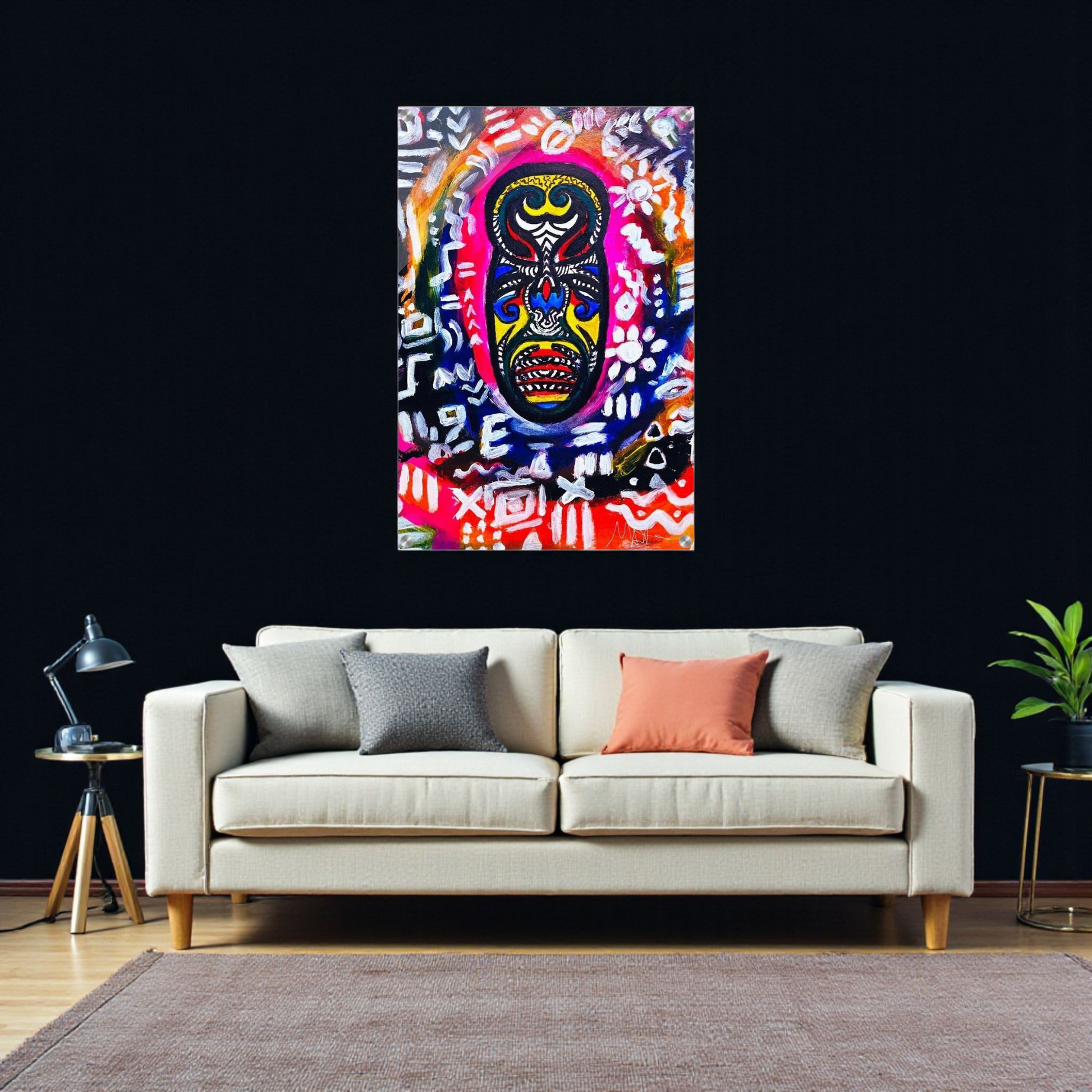 Vibrant Tribal Mask Painting, Acrylic Print - Authentic Handcrafted Decor